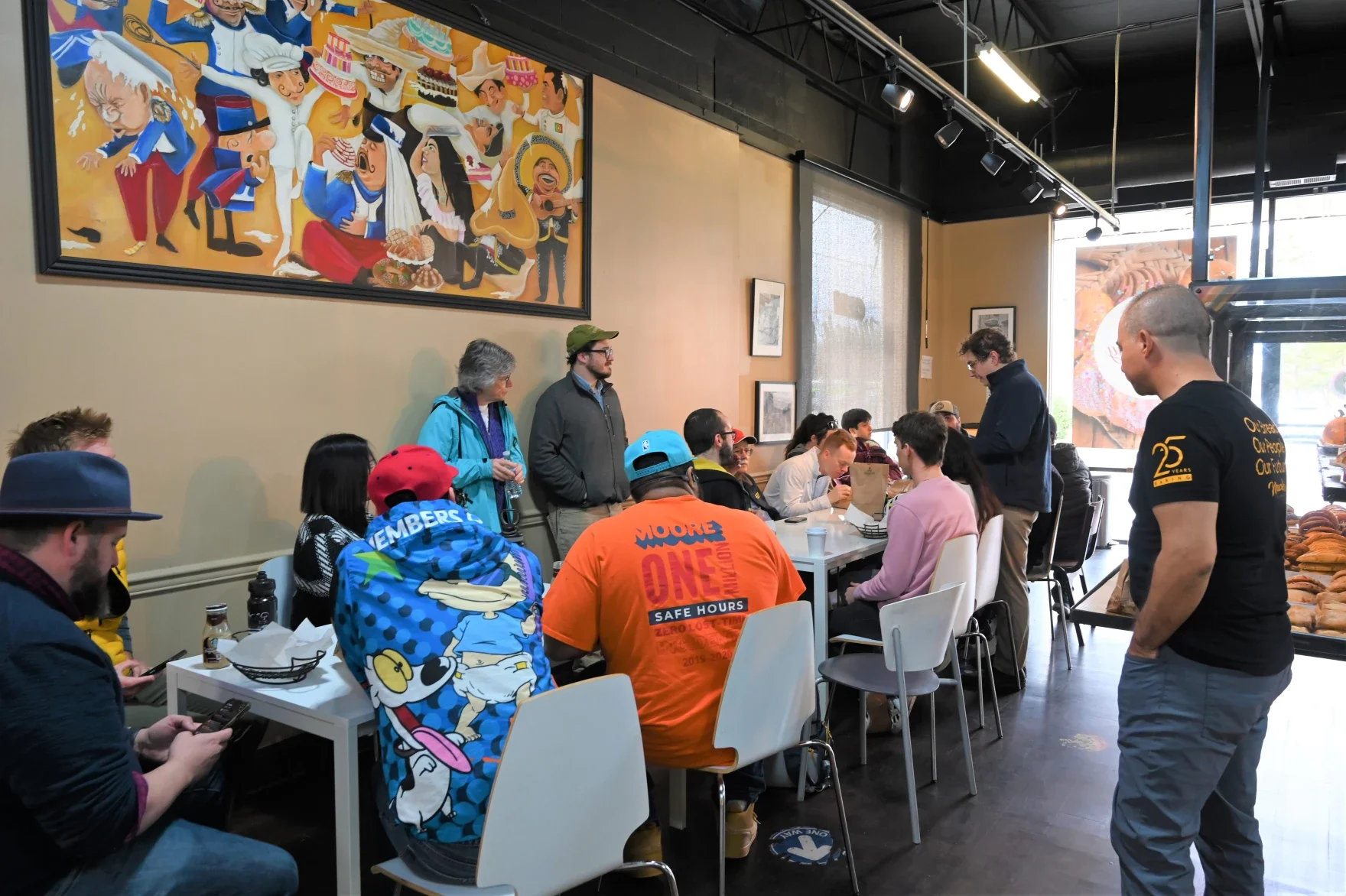 A 2023 community meeting, organized by Charlotte Urbanists, gathered at Manolo's Bakery in East Charlotte to discuss how policy was impacting immigrant-owned businesses.